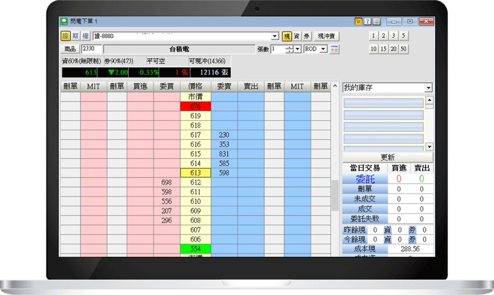 閃電下單更快速價位隨點掛單,直覺操作、快速下單,委託出價就是快!