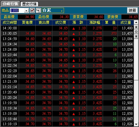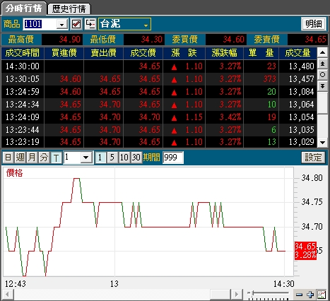 功能說明:瀏覽當日該個股的分時成交明細。 |