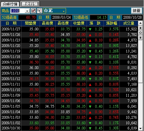功能說明:顯示該個股商品的每日收盤行情。 操作說明:同分時行情所述。 |