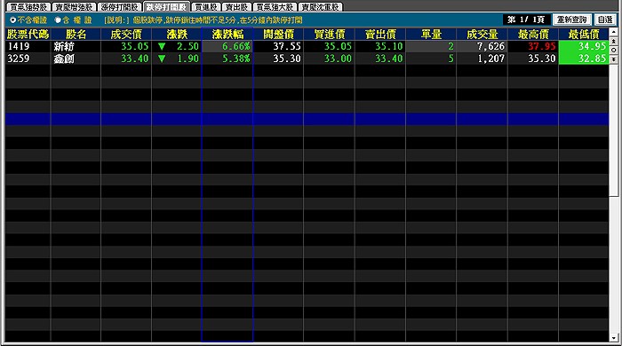 | 功能說明:提供上市櫃商品間之跌停打開股資訊及其相關買賣變化資訊。 |